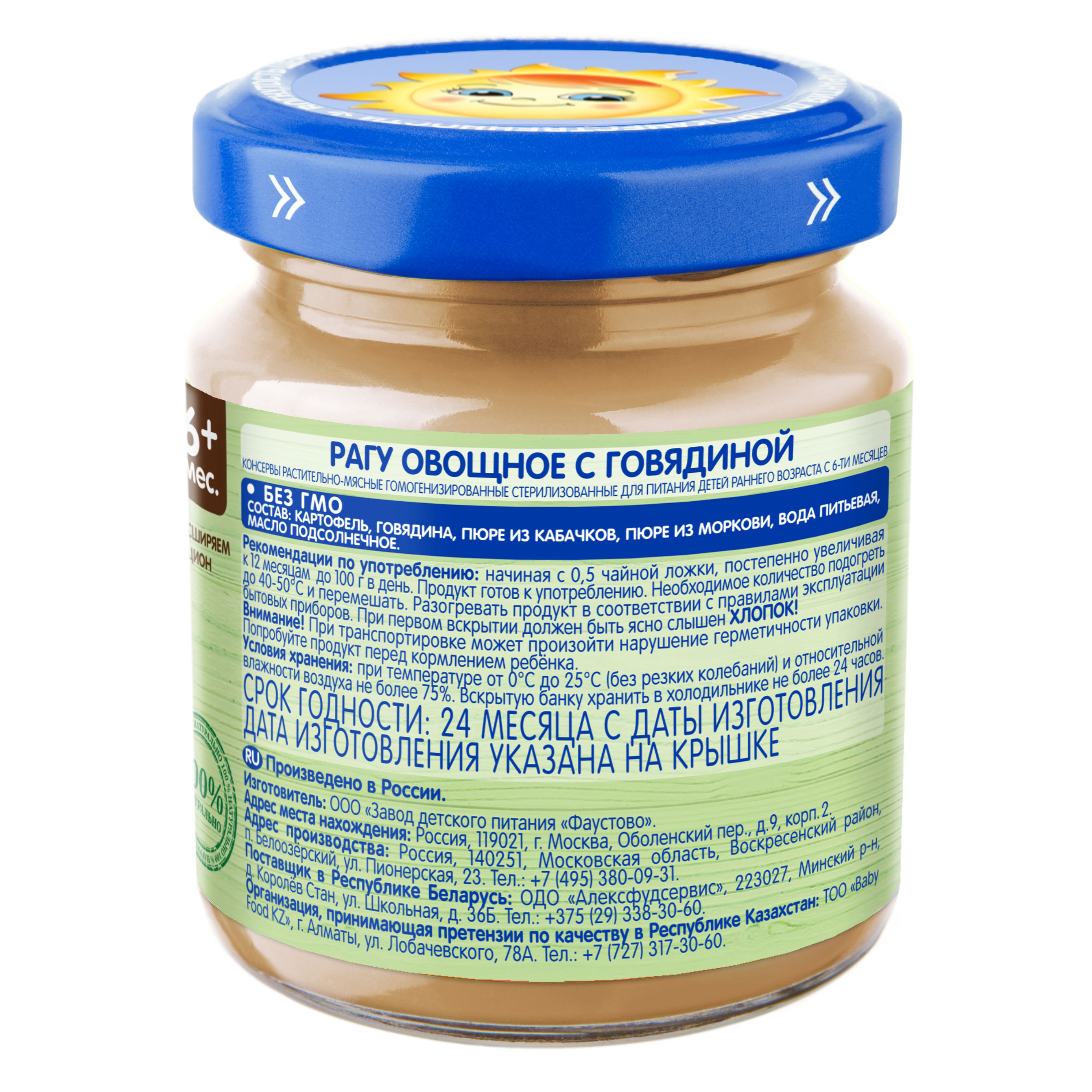 Мясное рагу с овощами - пюре мясорастительное гомогенизированное стерилизованное для питания детей раннего возраста