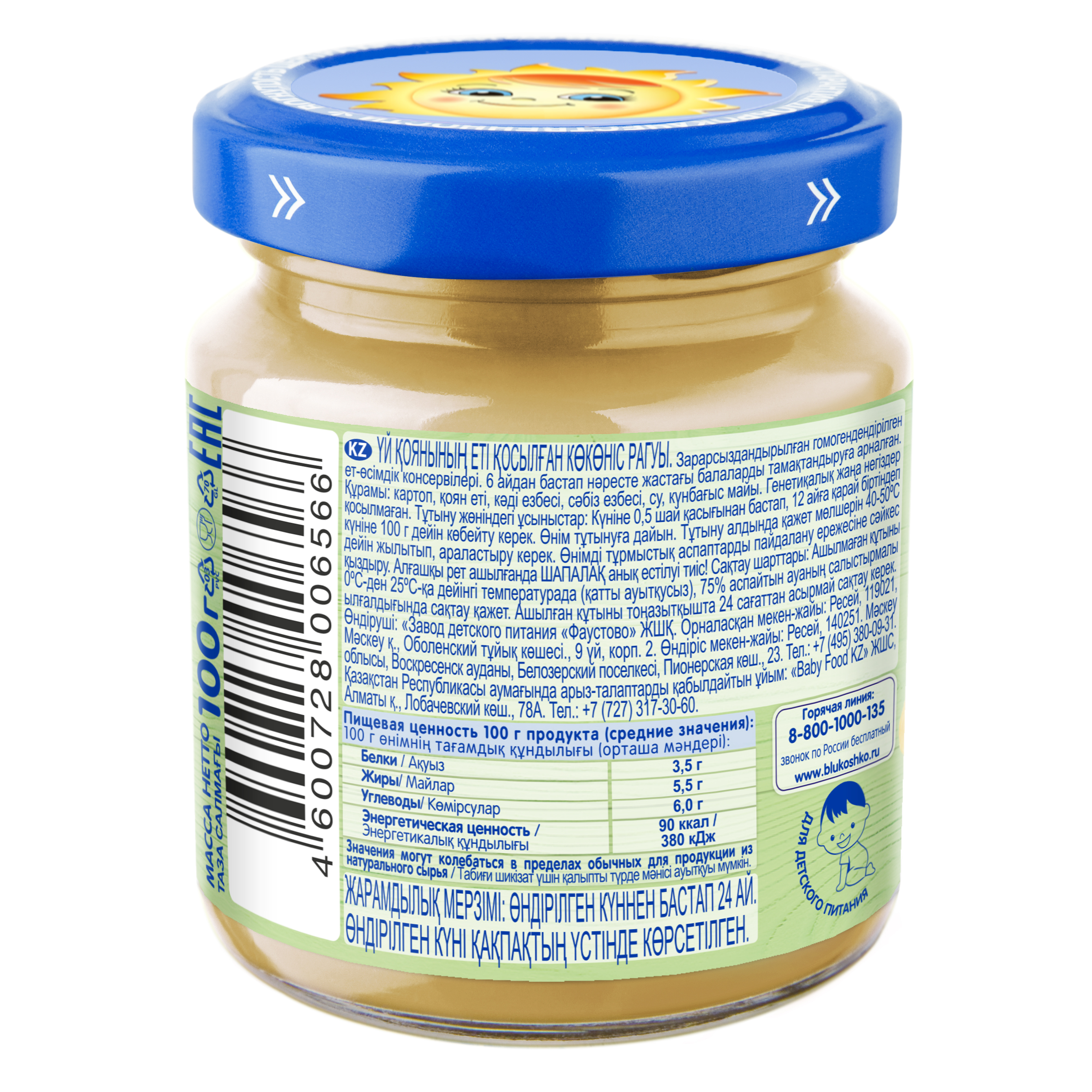 Мясное рагу из кролика - пюре мясорастительное гомогенизированное стерилизованное для питания детей раннего возраста