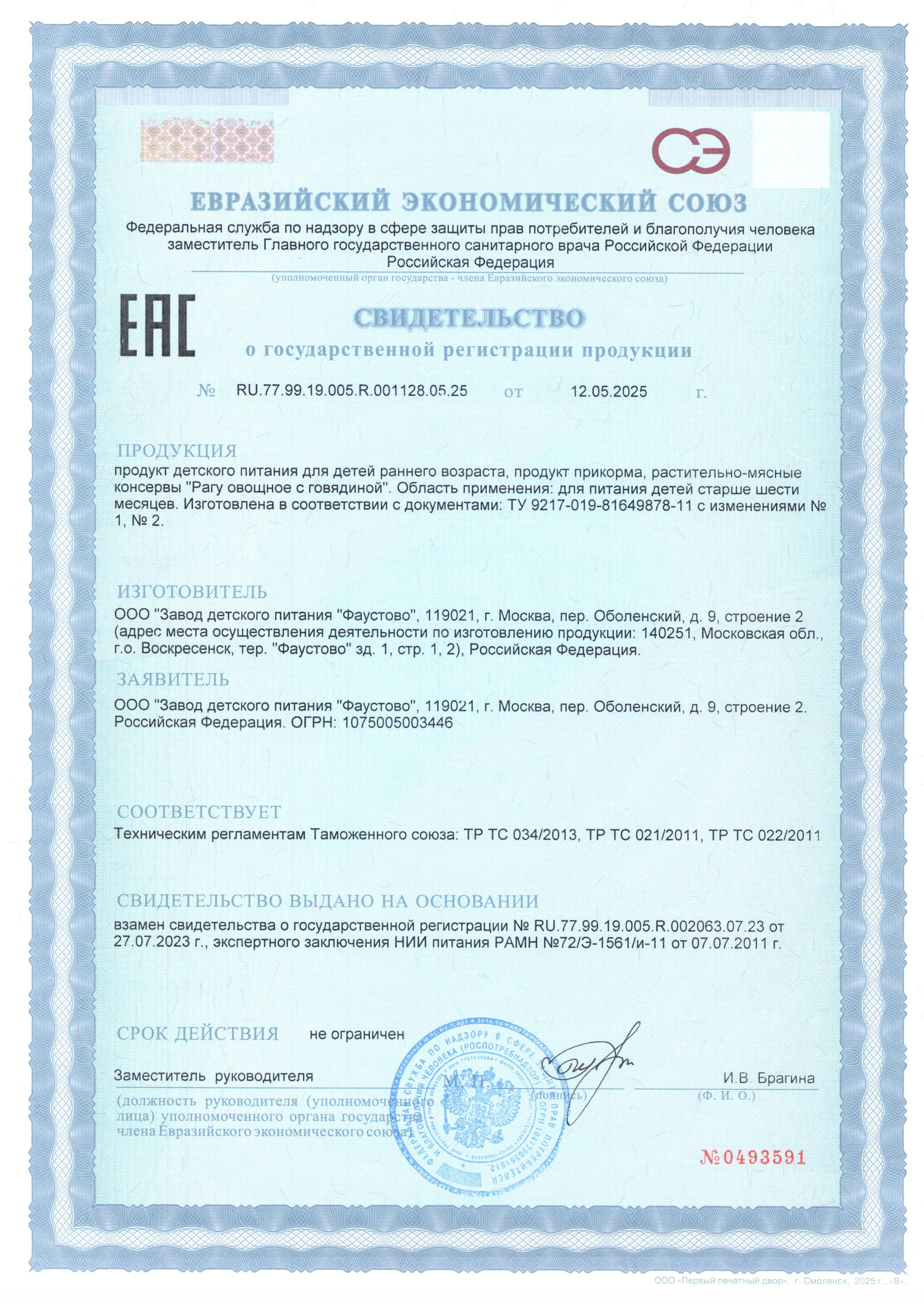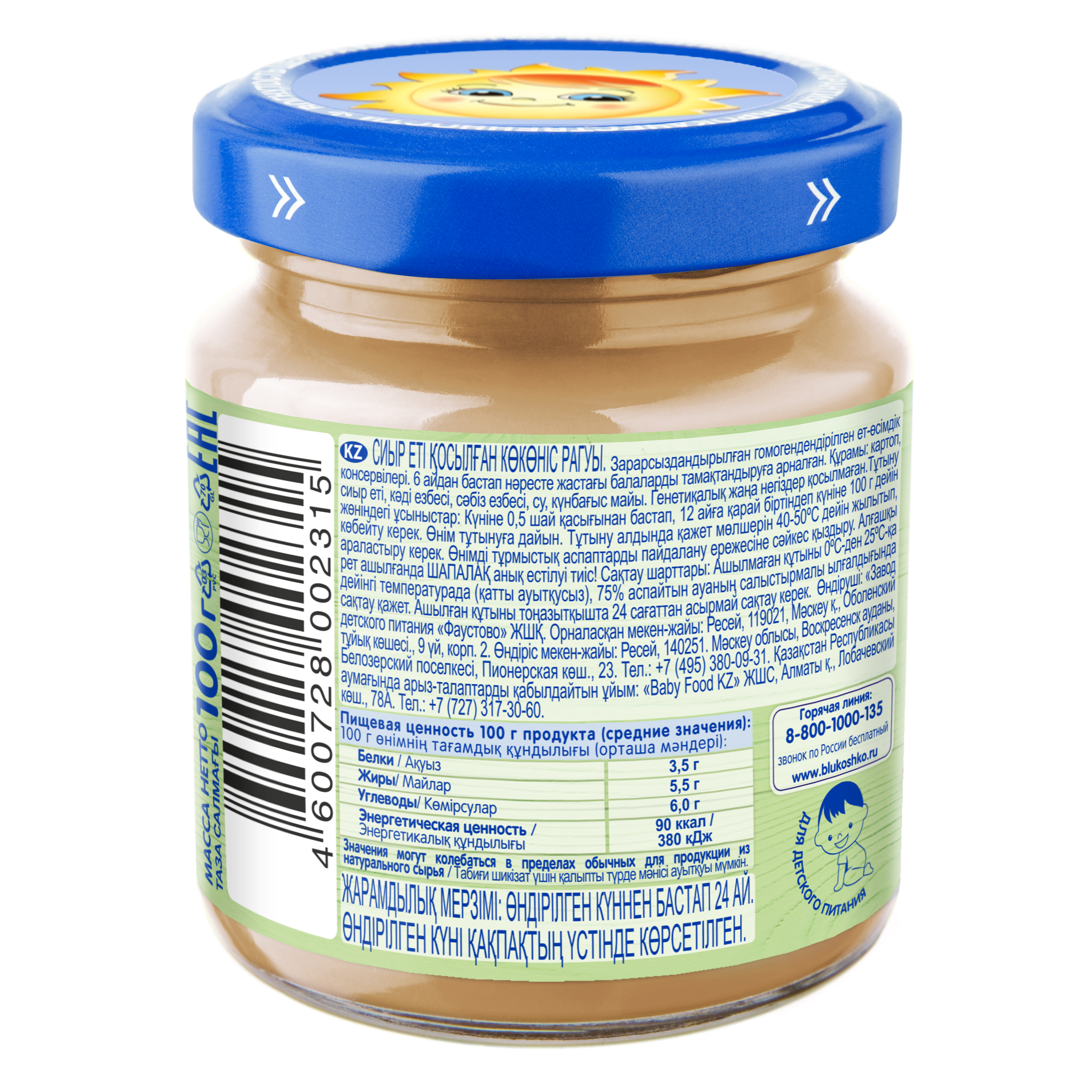 Мясное рагу с овощами - пюре мясорастительное гомогенизированное стерилизованное для питания детей раннего возраста
