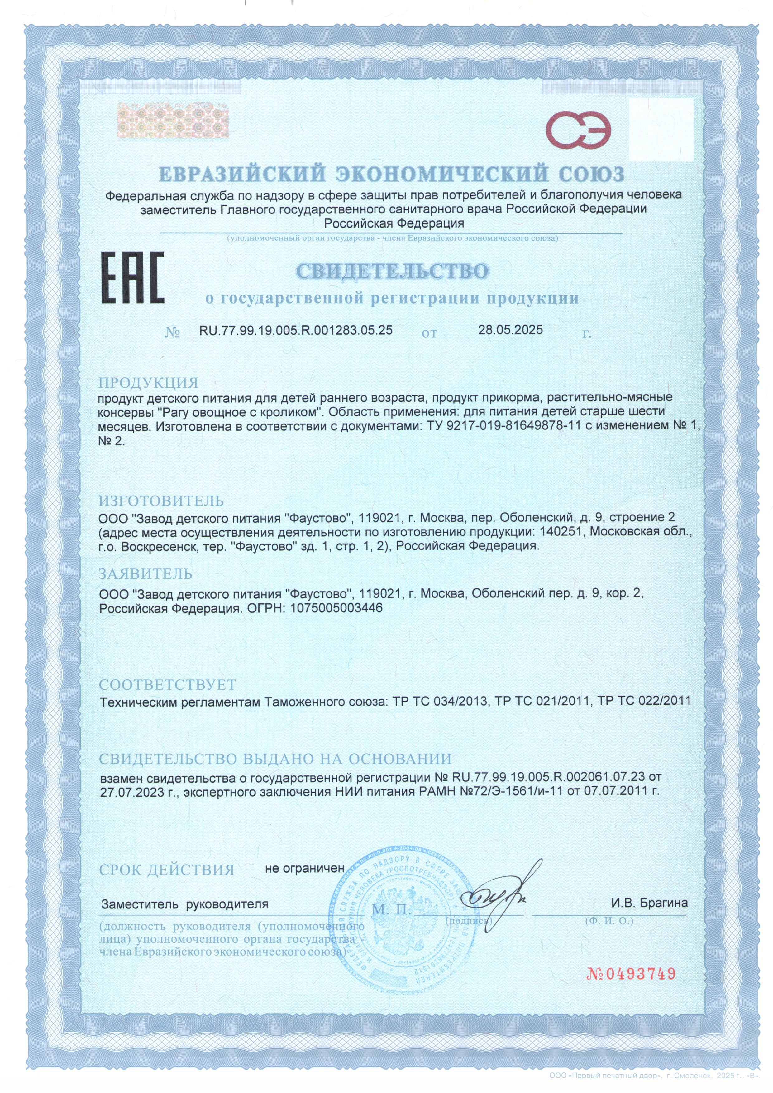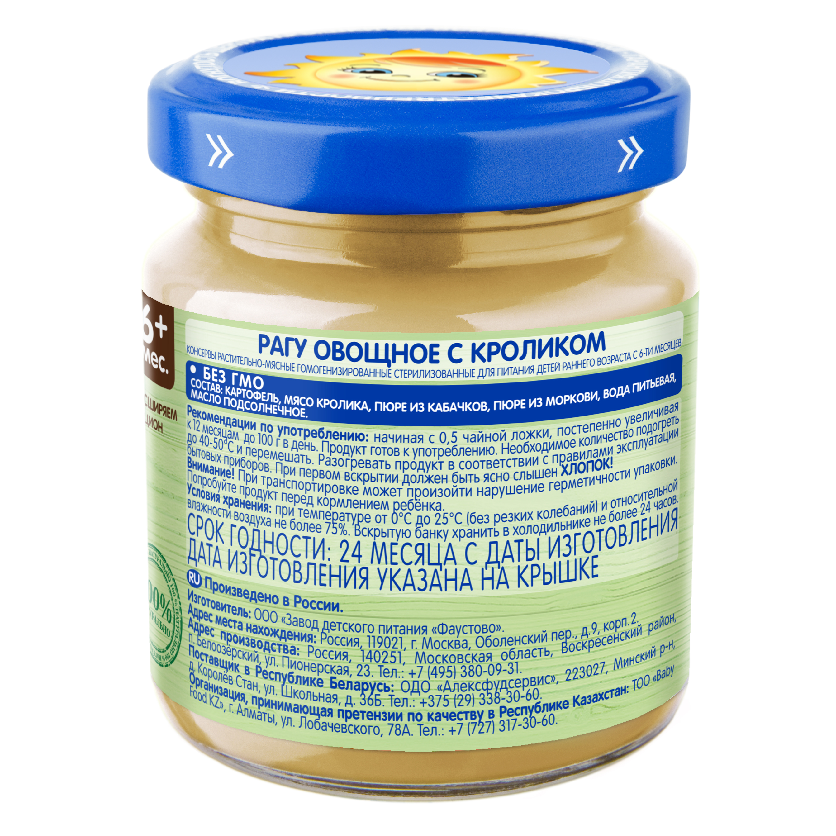 Мясное рагу из кролика - пюре мясорастительное гомогенизированное стерилизованное для питания детей раннего возраста