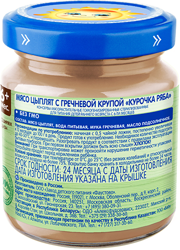 Состав: мясо цыплят, вода питьевая,мука гречневая, масло подсолнечное .
