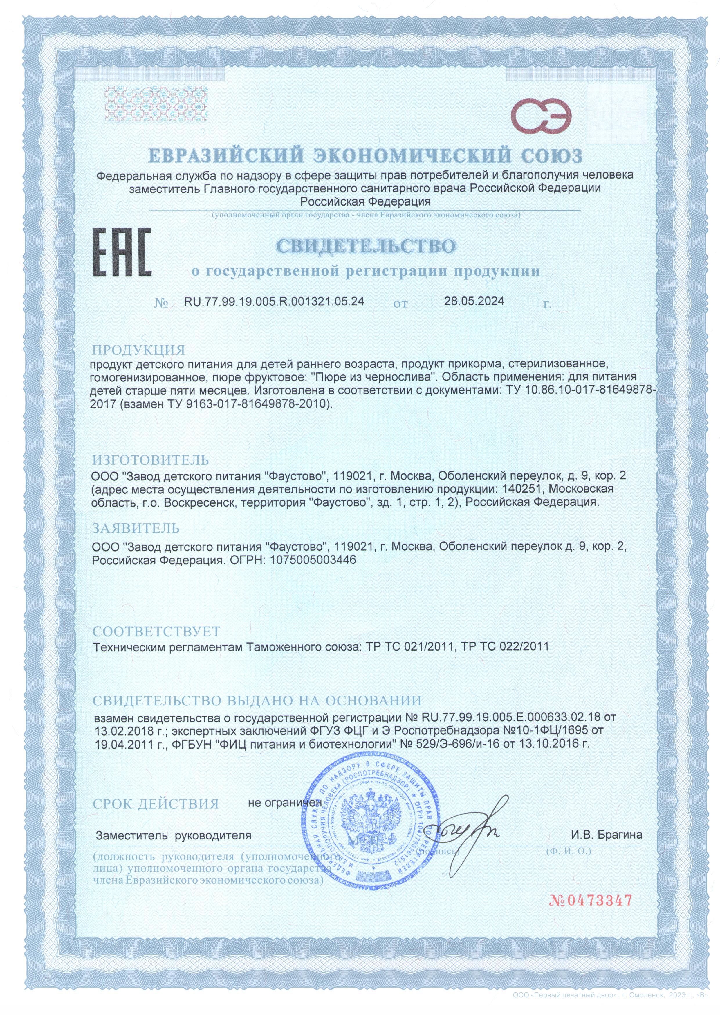 Состав: Пюре из чернослива. Содержит сахара природного (естественного) происхождения.