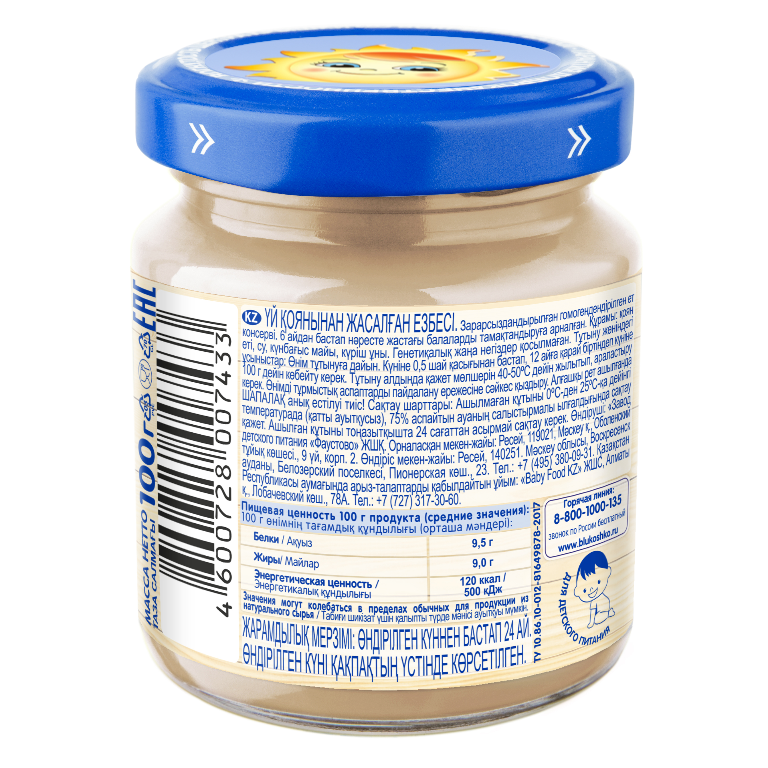 Пюре мясное гомогенизированное стерилизованное для питания детей раннего возраста