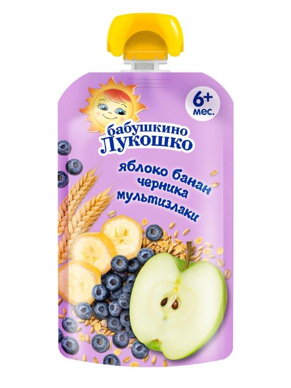Фруктово-злаковое пюре из яблок, бананов, черники с добавлением мультизлаков
