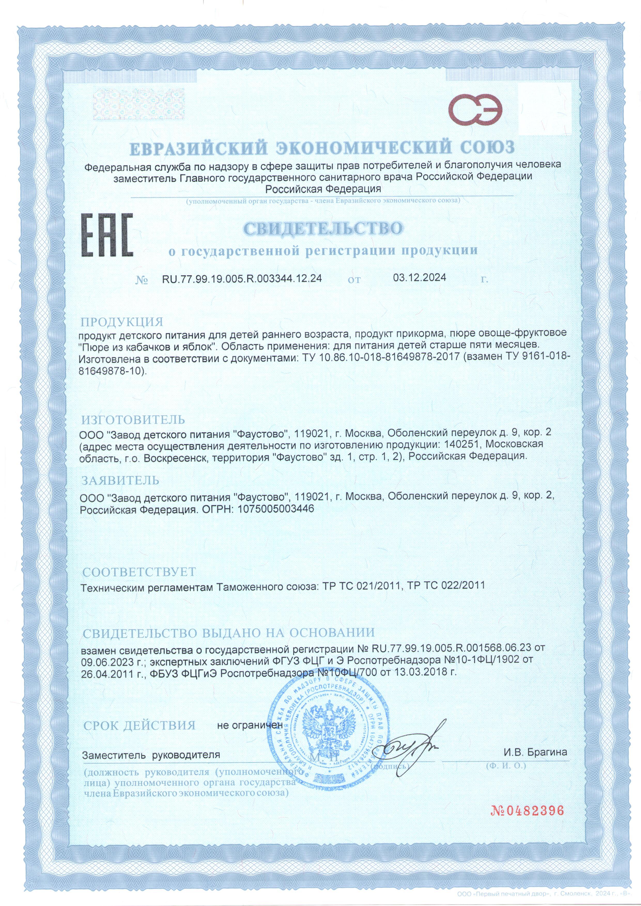 Пюре овоще-фруктовое гомогенизированное стерилизованное для питания детей раннего возраста