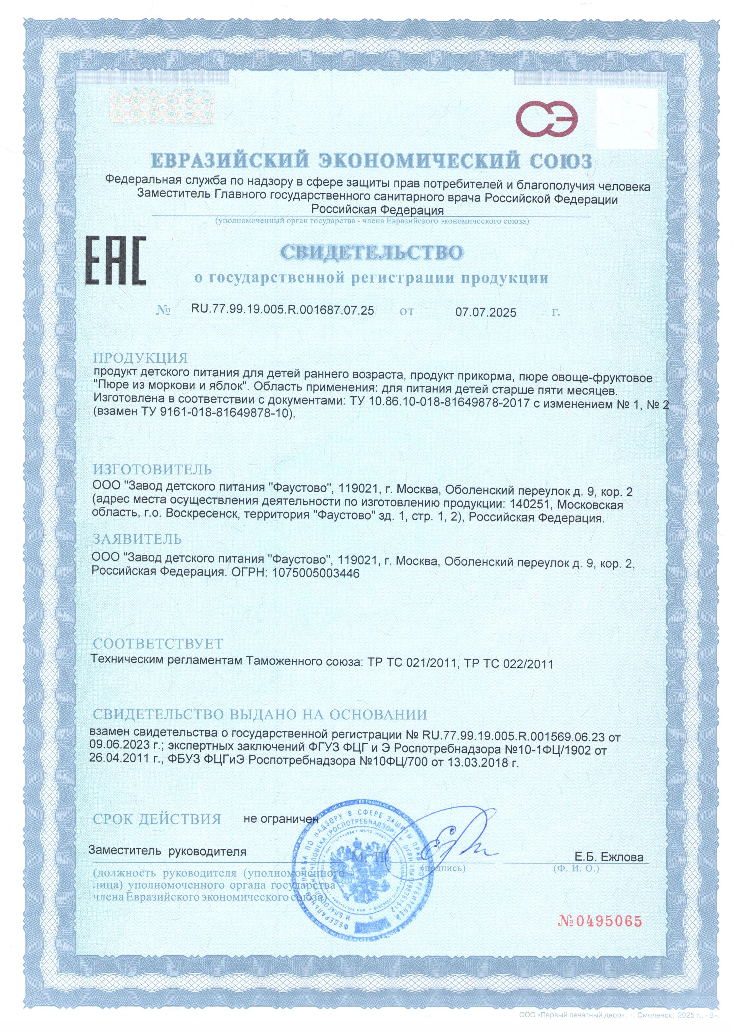 Пюре овоще-фруктовое гомогенизированное стерилизованное для питания детей раннего возраста