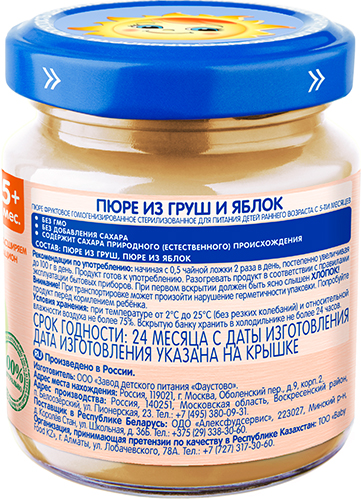 Пюре из груш, пюре из яблок. Содержит сахара природного (естественного) происхождения.