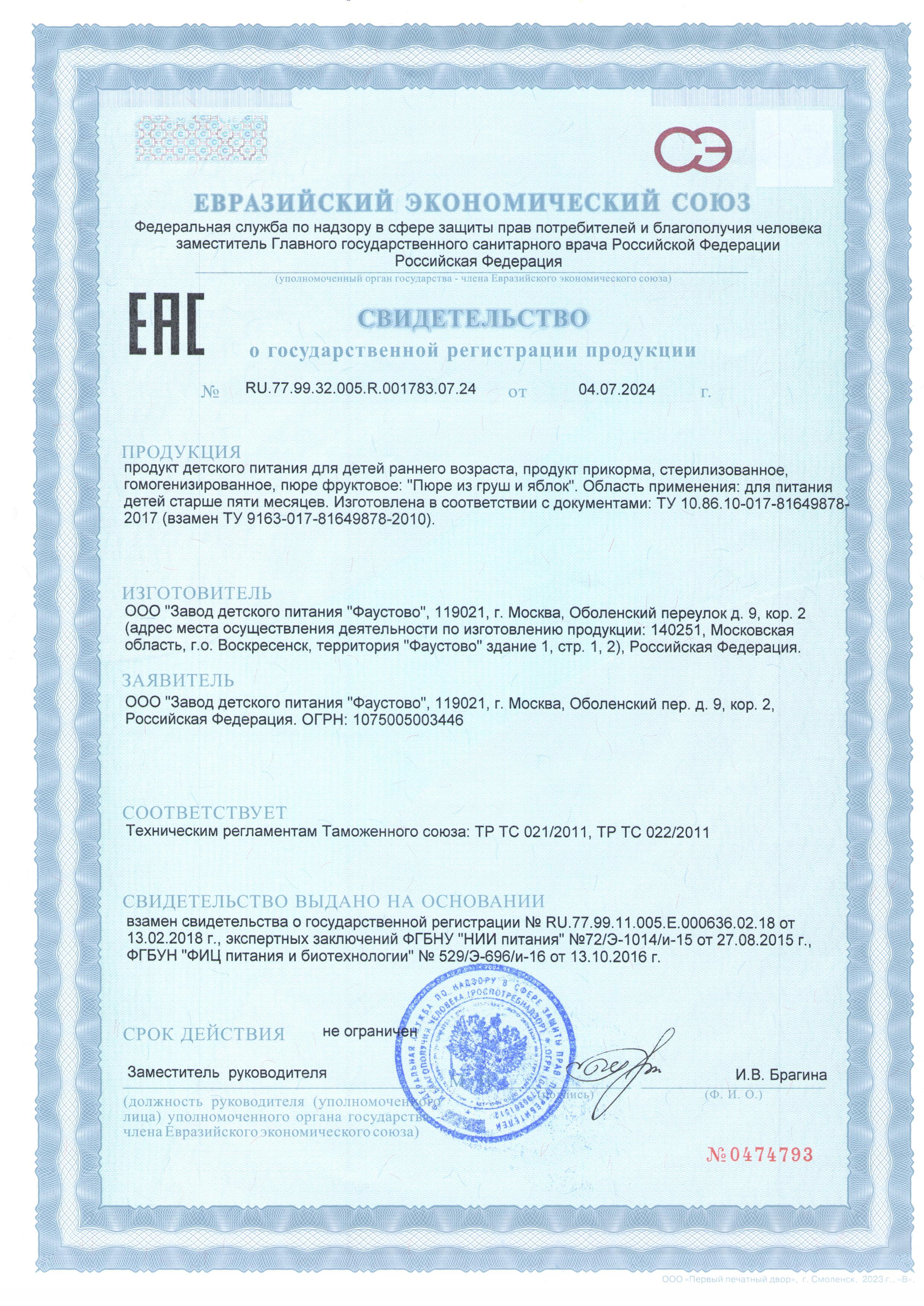 Пюре фруктовое гомогенизированное стерилизованное для питания детей раннего возраста
