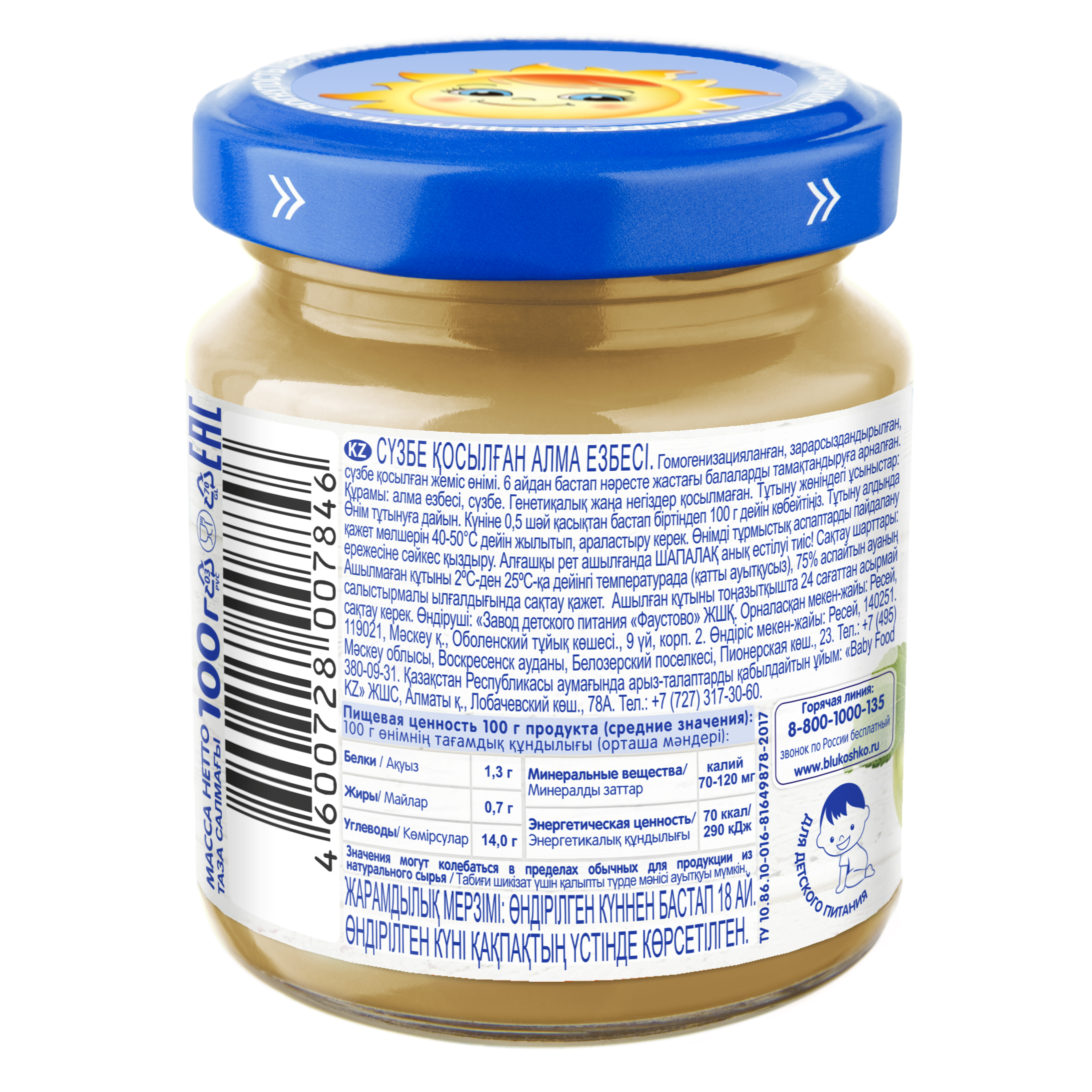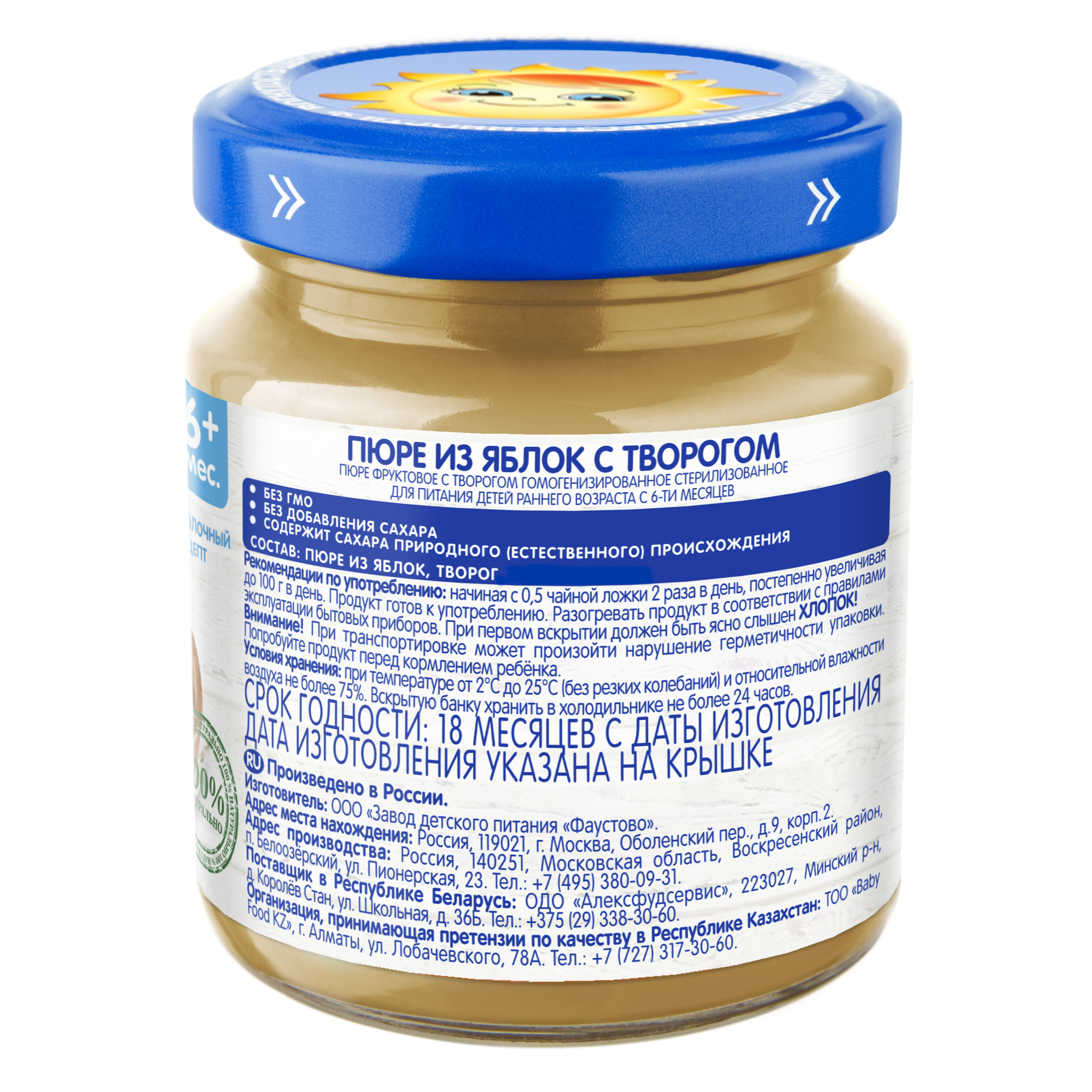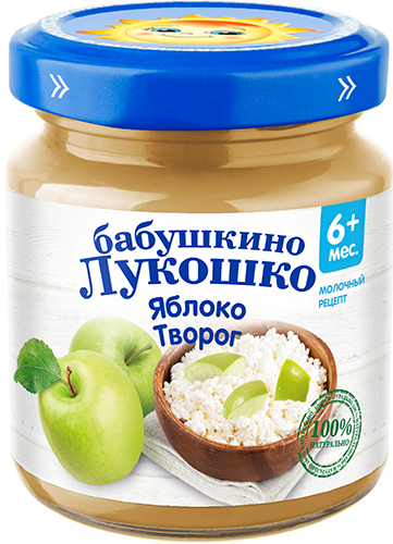 Пюре из яблок, творог. Содержит сахара природного (естественного) происхождения.