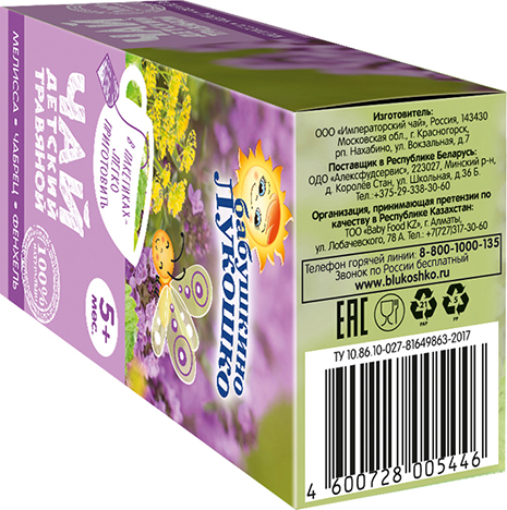 Травяной чай для детей раннего возраста «Бабушкино Лукошко» содержит только натуральные травы